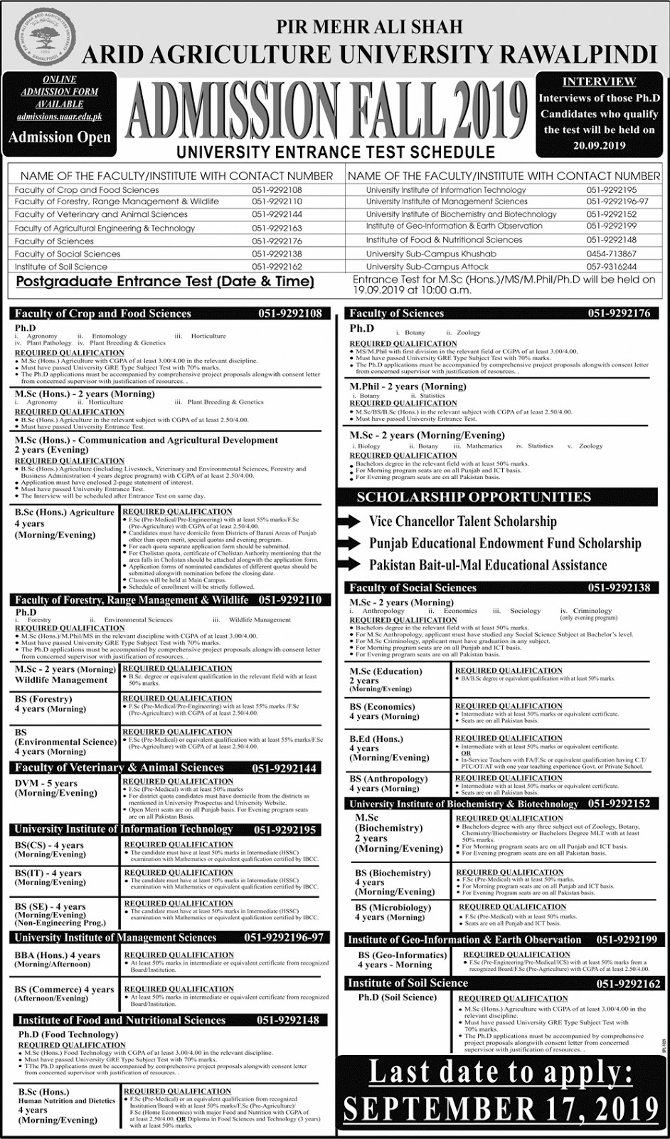ADMISSIONS 2019 | ARID UNIVERSITY RAWALPINDI