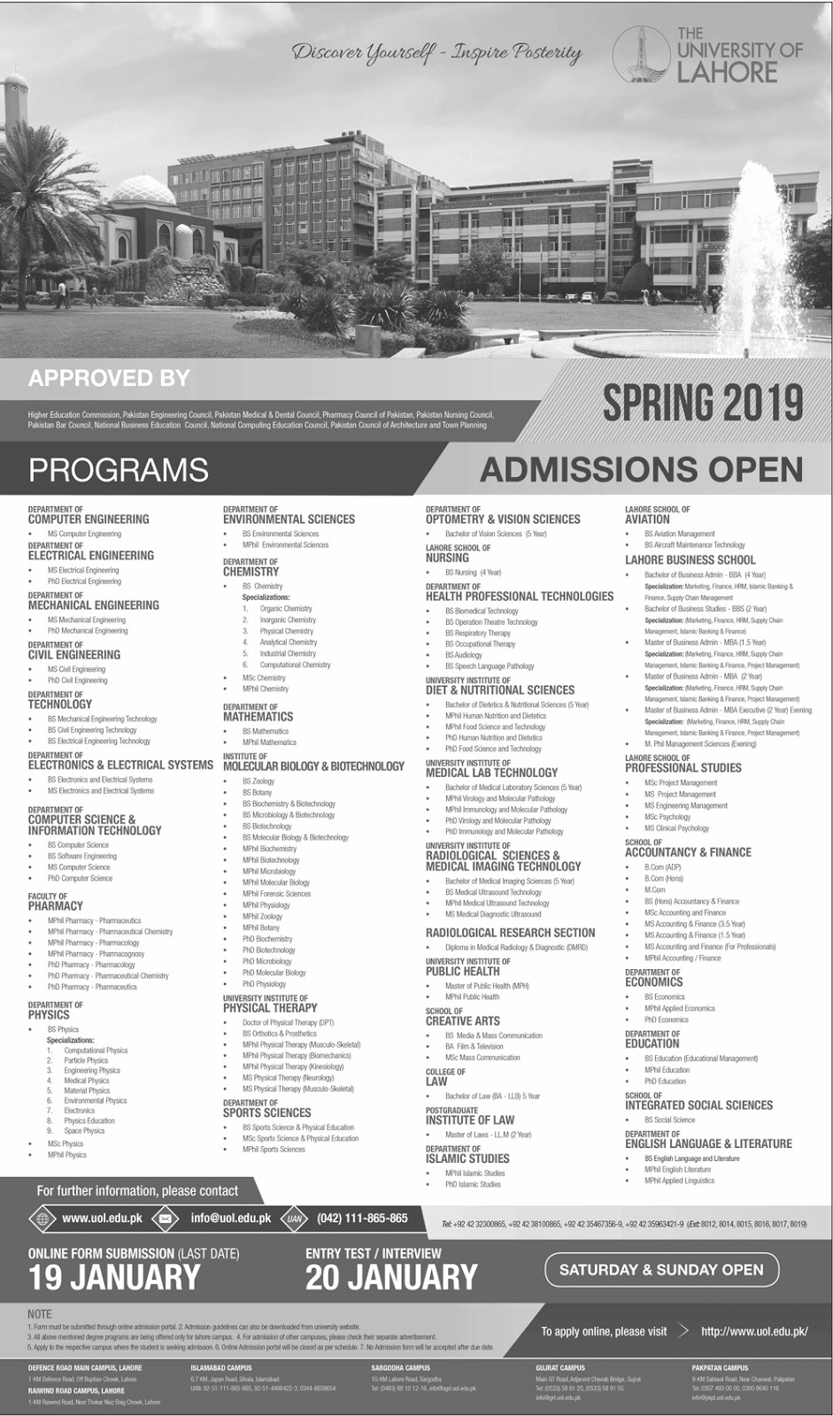 ADMISSIONS IN UOL | UOL SPRING ADMISSIONS 2018-19