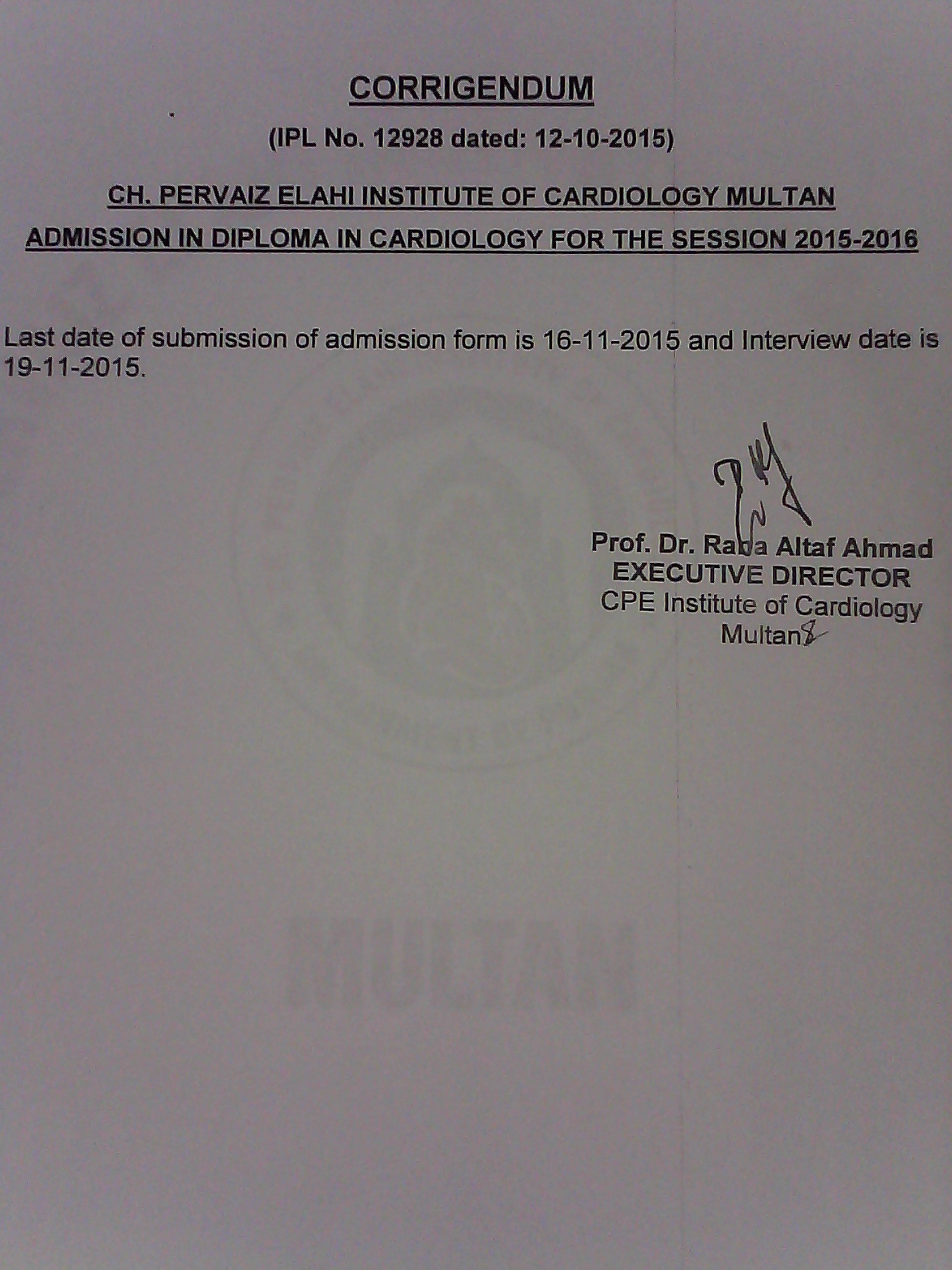 Ch Pervaiz Elahi Institute Of Cardiology Multan Admission