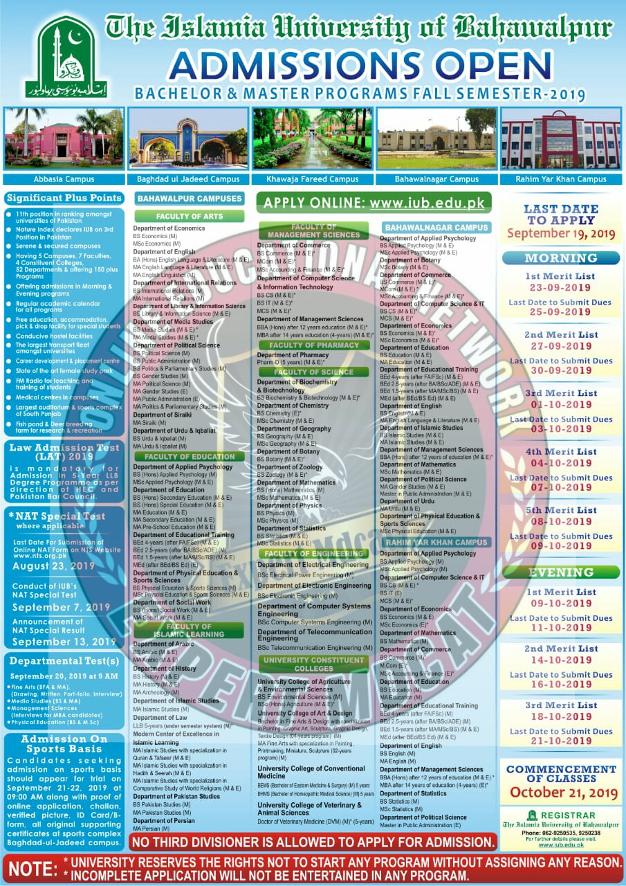 - Last Date to apply for IUB Special NAT 2019 :August 30, 2019