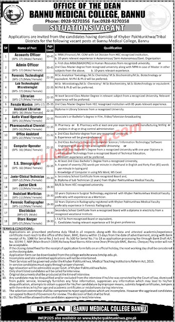 Bannu Medical College (BMC) Bannu Jobs 2019