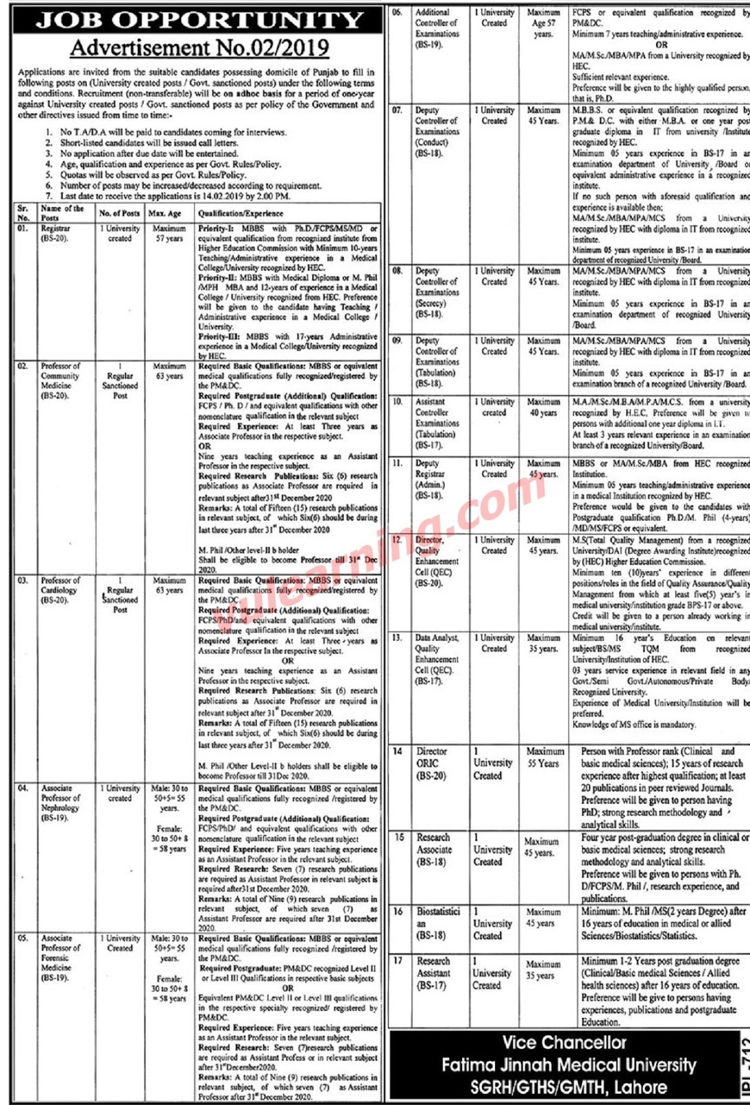 Last Date: 14 February 2019
