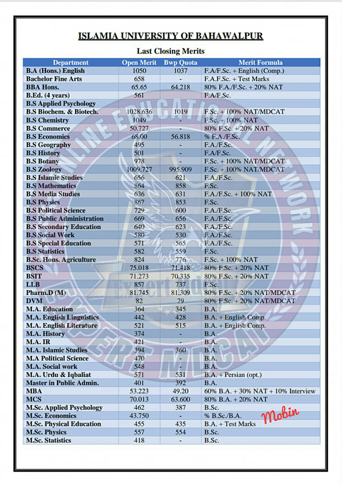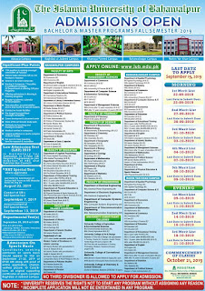 The last date to apply for admission in IUB is 19th September 2019