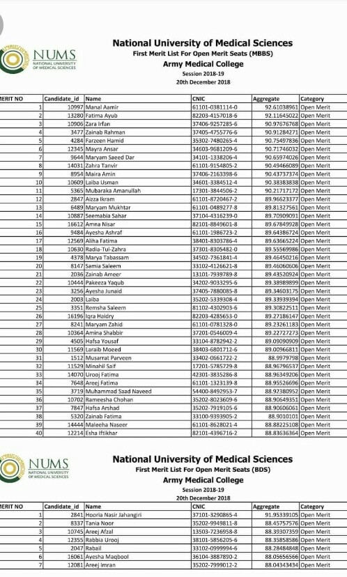 Here is the list of selected candidates selected on Open merit through NUMS
