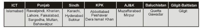 Here is details of centers of examination all over the pakistan