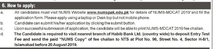 ⚠ NUMS-MDCAT 2019: It is the test to get admission into setup ran by the Pakistan Armed Forces.