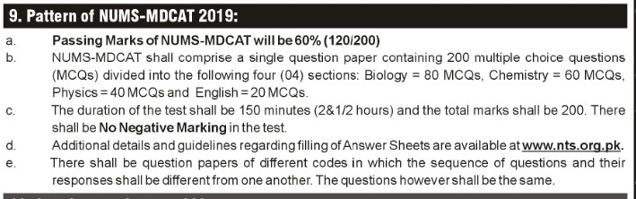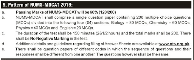 NUMS MDCAT 2019