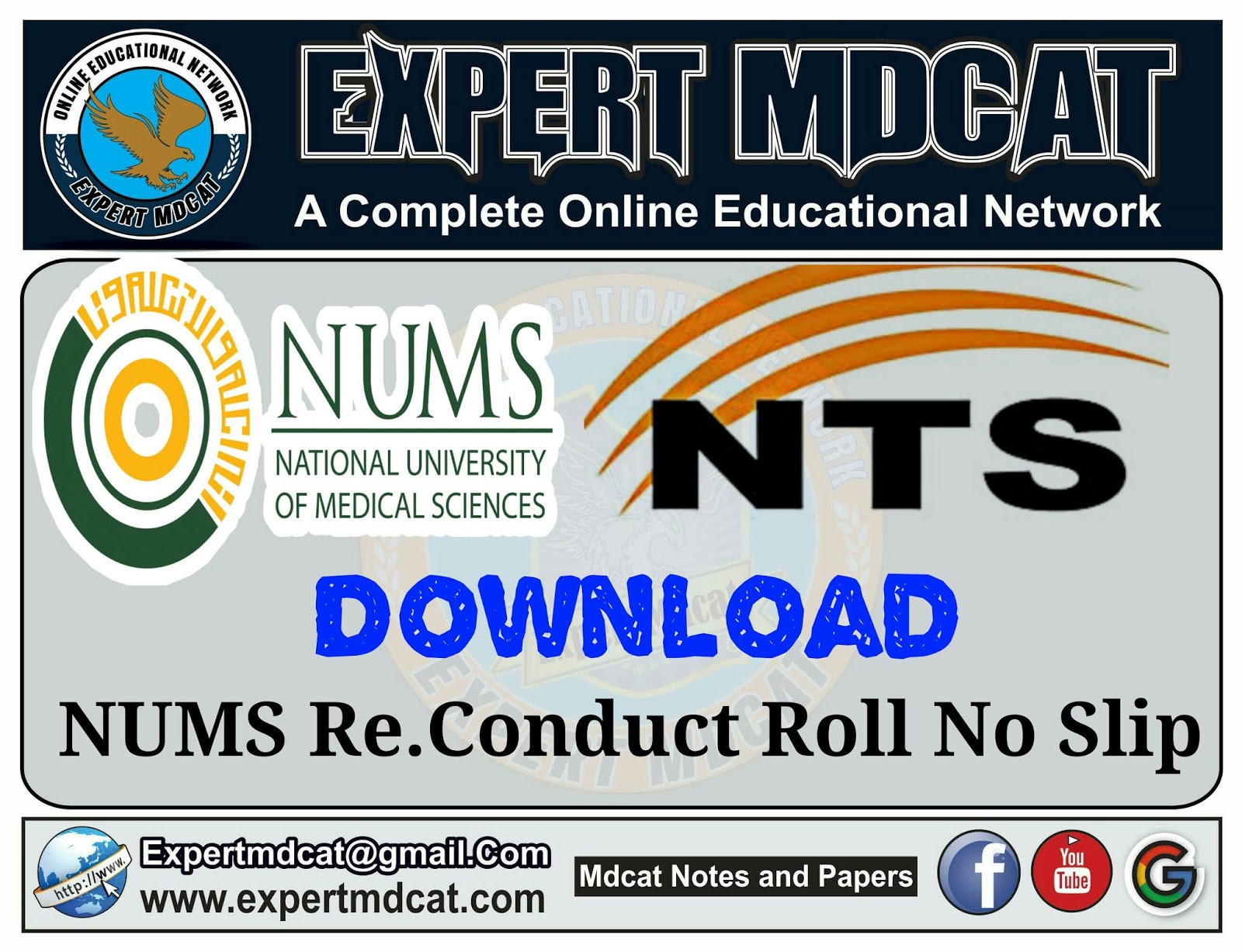NUMS has issue the new admitance card for test.