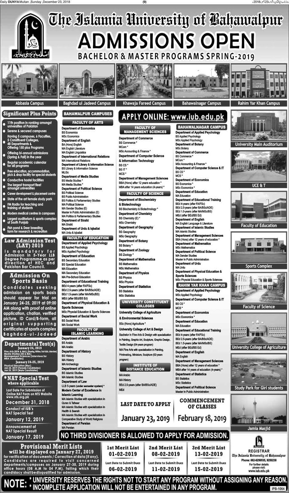 SPRING ADMISSIONS | ADMISSIONS IN ISLAMIA UNIVERSITY BAHAWALPUR (GOVT UNI)