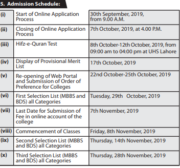 UHS Private Admission MBBS/BDS complete Step by Step Process
